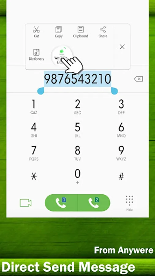 To make it more seamless, this direct message app allows you to simply copy the phone number from anywhere in your clipboard and simply clicked on app icon for show in clipboard more button and just click it and send message to any phone number.