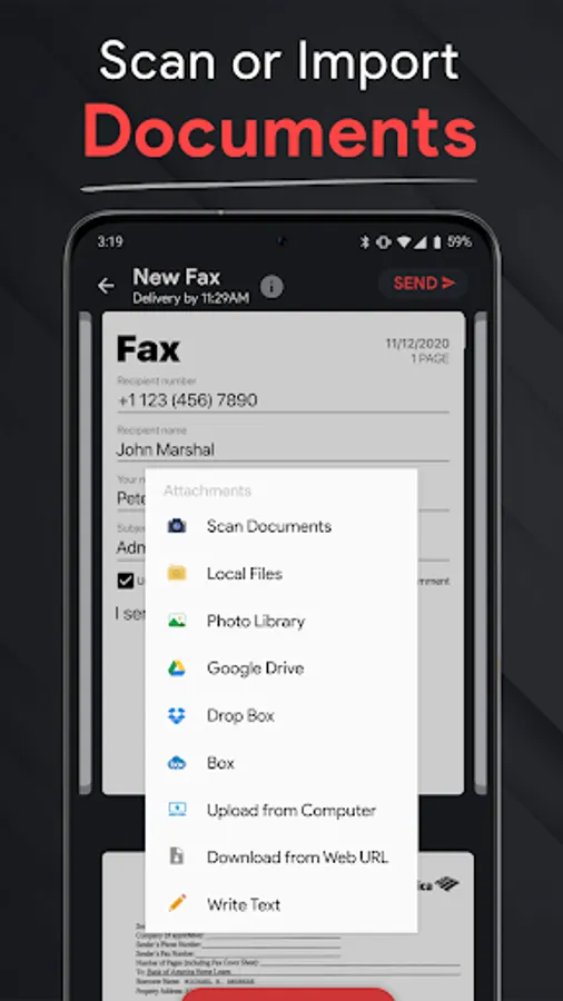 ● Send Faxes - Easy faxing procedure with the Free Fax app. Upload files easily from your phone, email, or cloud storage to fax images, fax photo, fax documents & you can fax internationally at ease.