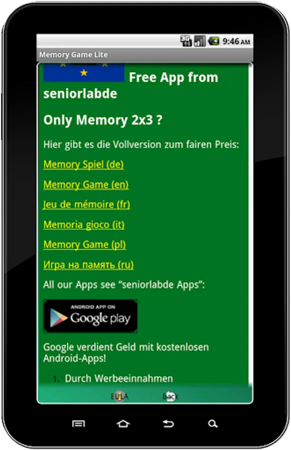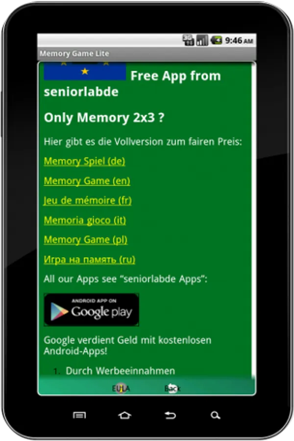 10 Memories (Lite Version 1 Memory) competing for grandparents, parents, children, grandchildren and great-grandchildren. This unique learning app is unrivaled.