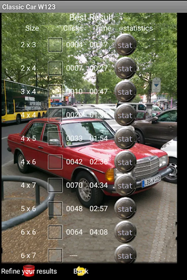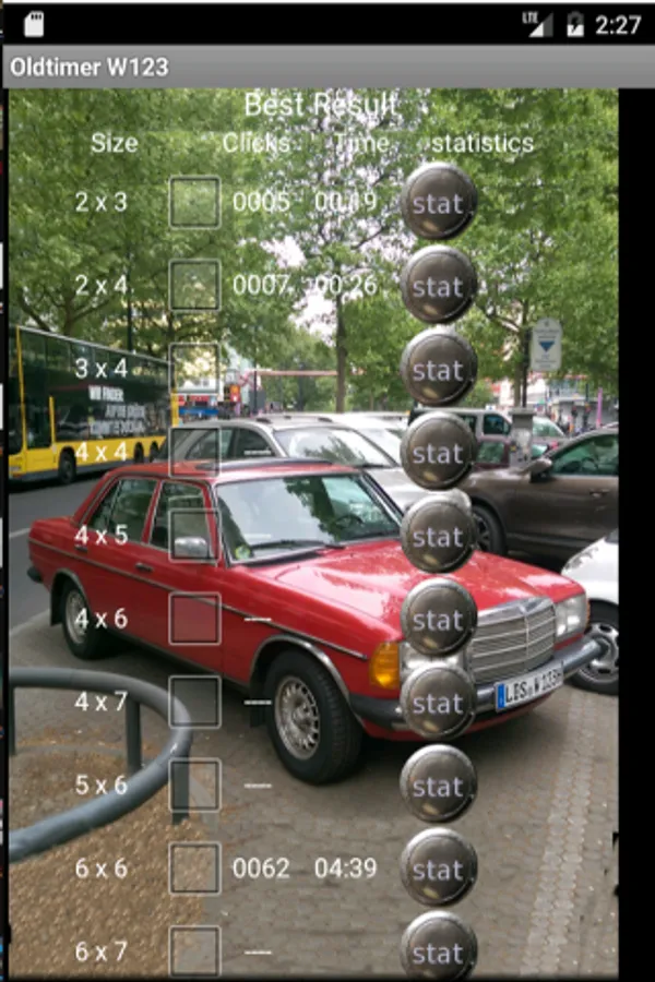 This unique vintage-learning app is unrivaled and was created for lovers of classic cars. Hear the sound of the 70s. The model W123 250 was built until 1984. Today a real classic. The buttons 2x3, 2x4, 3x4, 4x4, 4x5, 4x6, 4x7, 5x6, 6x6 or 6x7 you start your classic car!