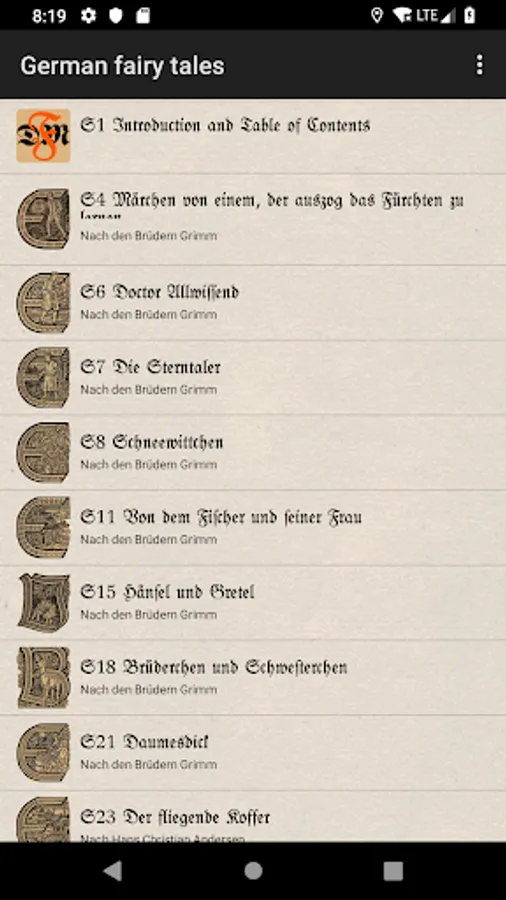 In memory of my childhood, I developed the fairy tale book "German Fairy Tales" from 1939 as an app in old script, like the fairy tale book. Seniorlabde wishes you lots of fun with the app.