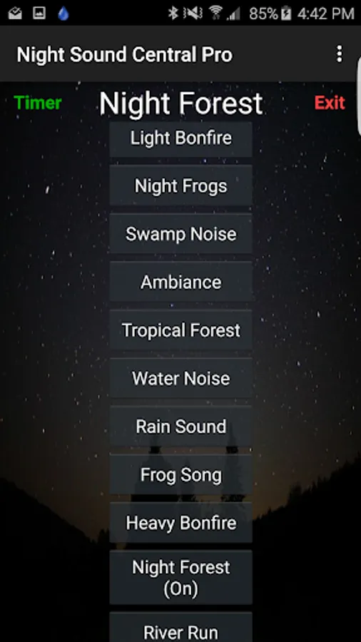 Beautiful Night Sounds to listen to and relax the mind. Use this handy tool to fall asleep, meditate, or just sit back and relax to the calming sounds of the Night. Night Sound Central Pro also includes a timer feature to turn off the nature sounds at a desired time or for falling asleep. This is the Pro version and includes: