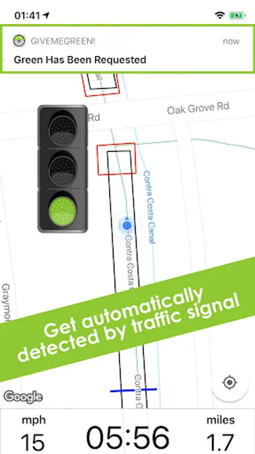 The GiveMeGreen! app allows you to be automatically detected up to 300 feet in advance of an intersection.