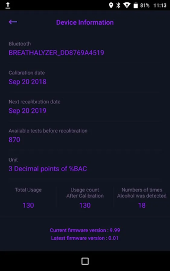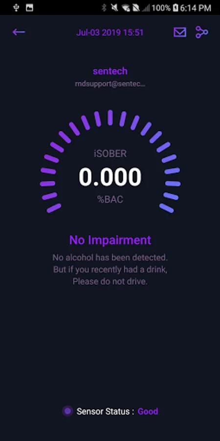 Whenever using a breathalyzer under pairing mode, Sensor quality will be checked and will give a message on an i-SOBER App.