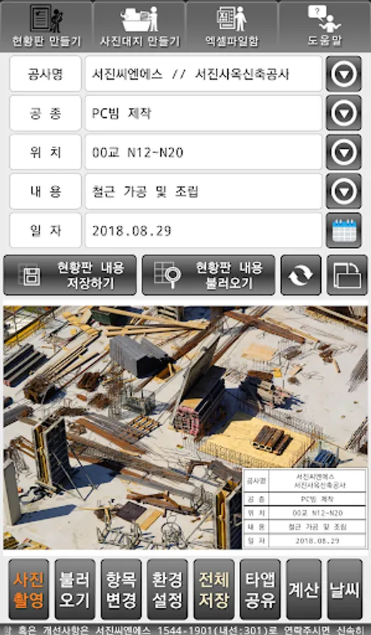 건설, 건축, 토목, 공사현장에서 시공사진을 촬영할 때 별도의 보드판 없이 스마트폰으로 사진을 찍고 서진 공사현황판 앱을 이용해 바로 현황판을 만들 수 있습니다.