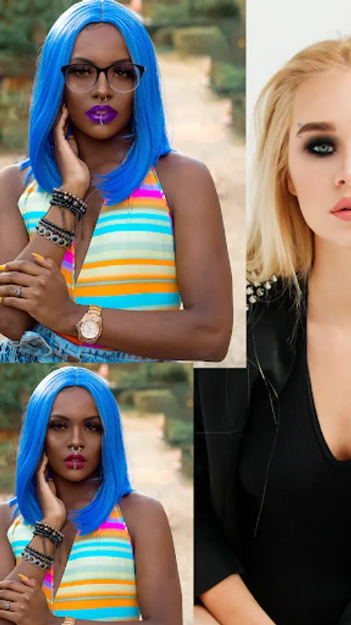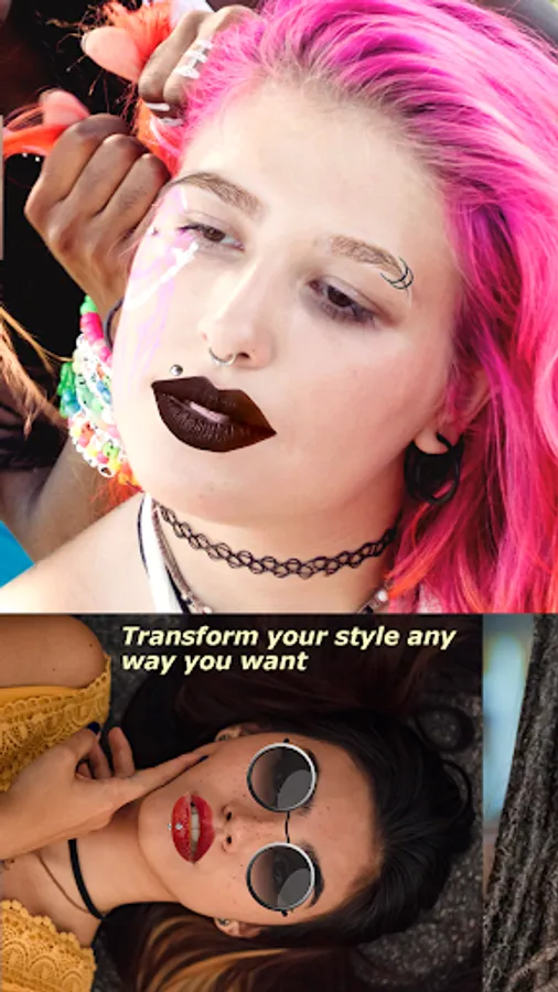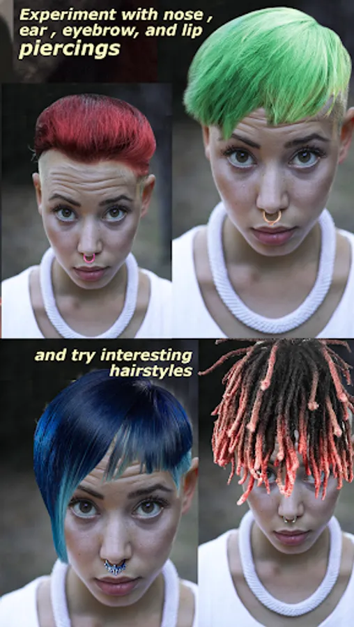 🎠Try on piercings and different hairstyles and save your face transformation photo montage to your device,