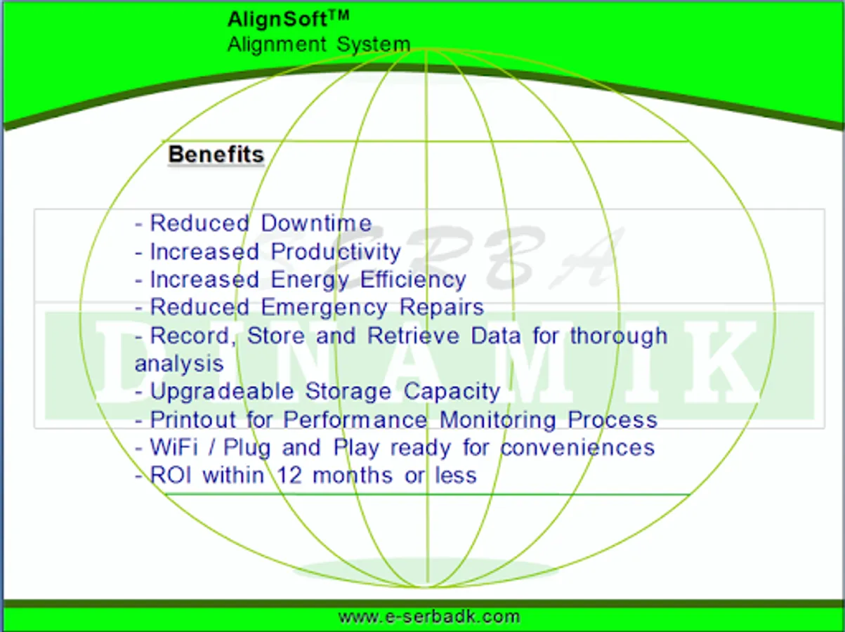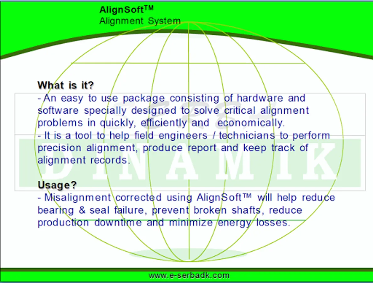 - Correcting misalignment with AlignSoft is simple and helps reduce incidences of bearing and seal failure, prevent broken shafts, minimize energy losses and reduces production downtime.