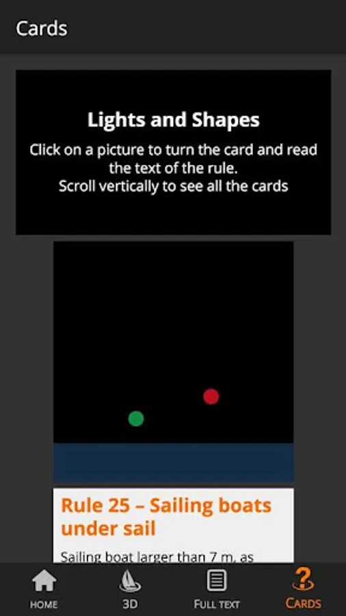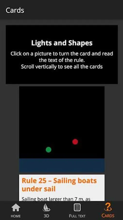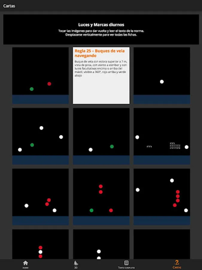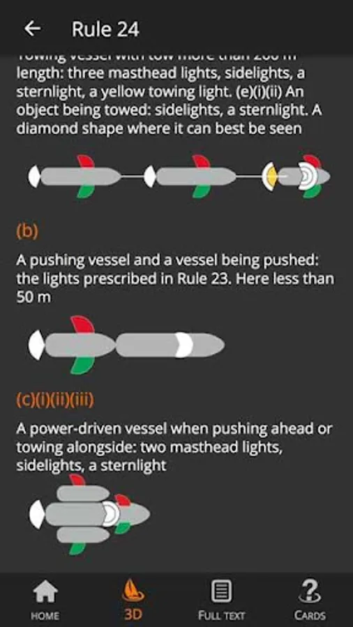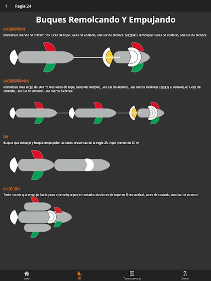 The lights and shapes permit identification of any ships encountered, determination of the route and establish rights of way to avoid collisions. The application is divided into 3 parts: