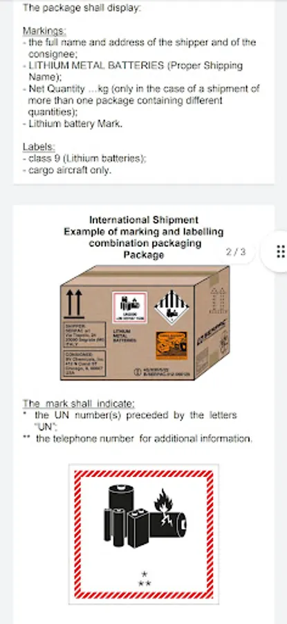 This application provides a reliable and complete guide on the procedures for packing, labelling and marking the package, fill in all required documents and define the maximum quantities permitted by the Regulations of the mode of transport you want to use.