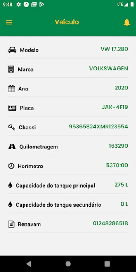 Application to Control the Fleet of vehicles from the company Serra Diesel.