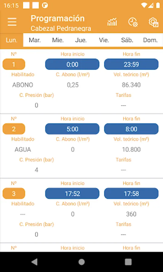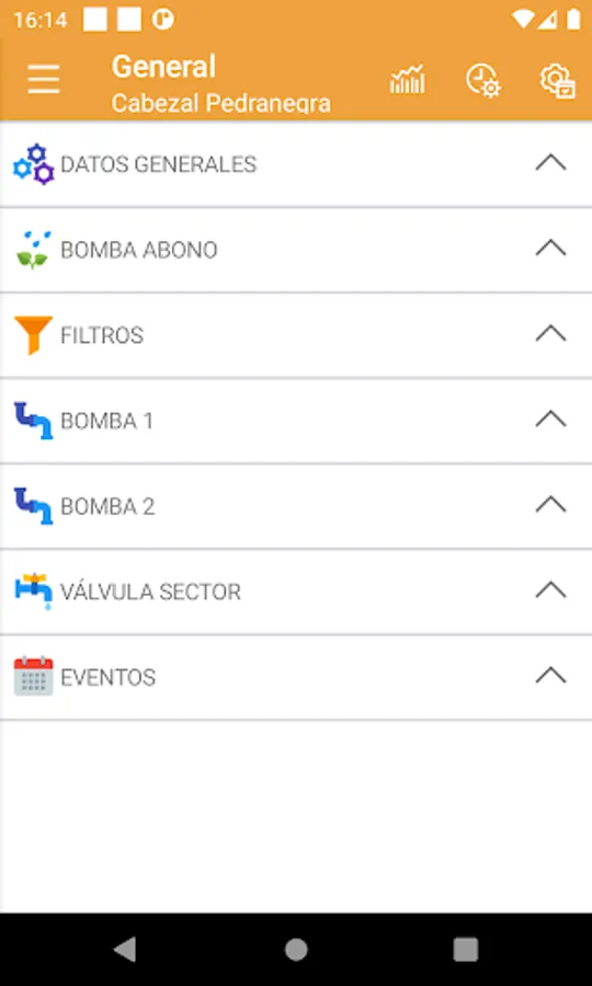 Integral control of heads, basins and impulsion systems for irrigation in Sertec sector 9. The application allows the consultation and manipulation of data for the management of all the relevant information on the different installations and irrigation schedules.