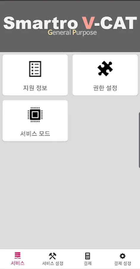 V-CAT provides payment services using all wired/wireless dongle and payment terminals provided by Smartro. Now you can easily and conveniently use the credit card and cash receipt payment service.
