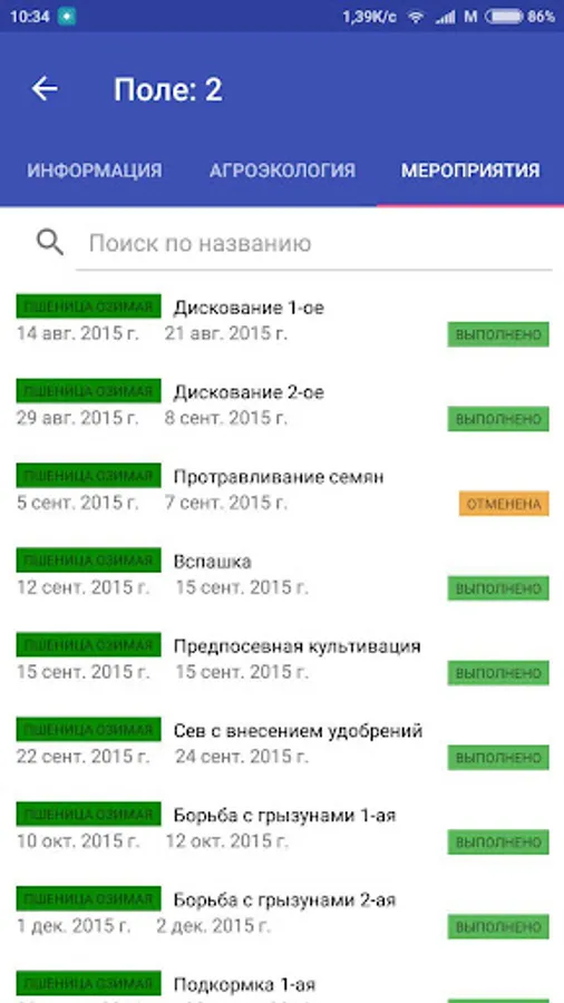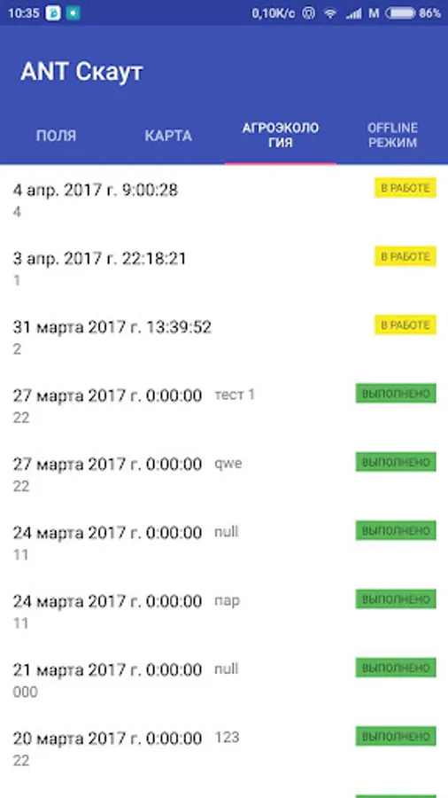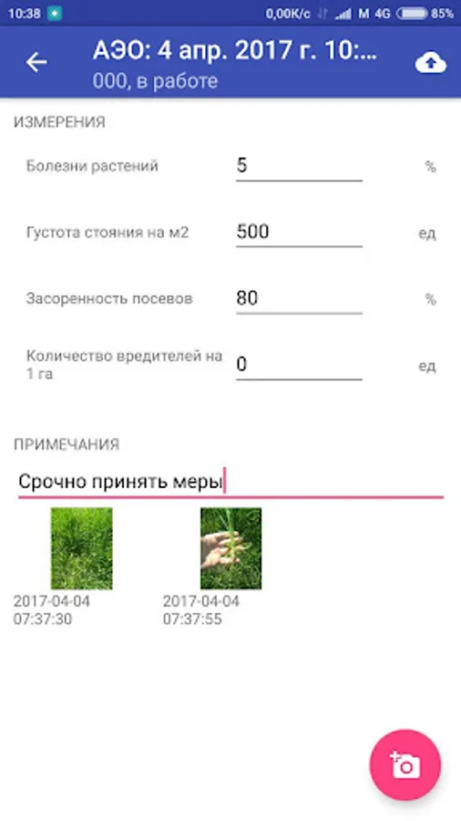 To accumulate knowledge about field detours, a special mobile application is used, integrated with the service, with which the agronomist takes photographs of the state of the fields with reference to the location and records his observations.