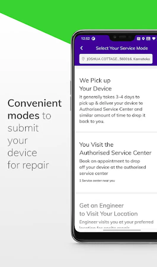 Digital Service Experience - Book a repair from your home, avail free pick-up & drop of your portable device using the app. Digitally track the end to end repair journey.