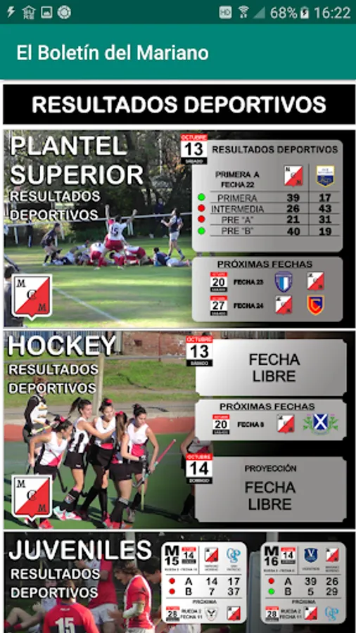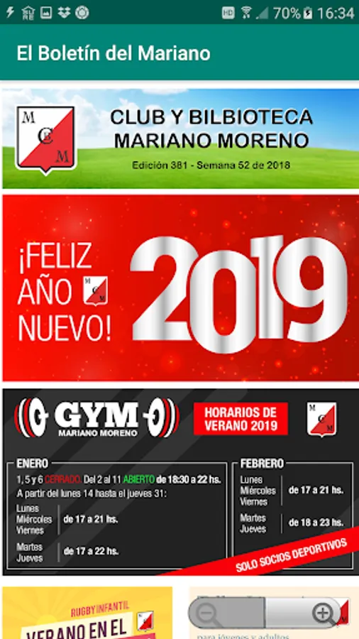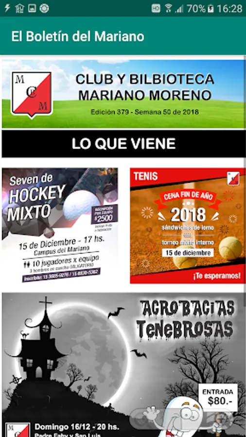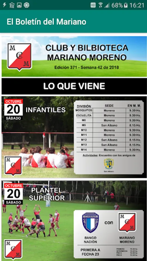 This app brings members and followers of the Mariano Moreno Club and Library information about upcoming sports activities as well as the results of recent ones. In addition, info on social activities and general interest about our institution.