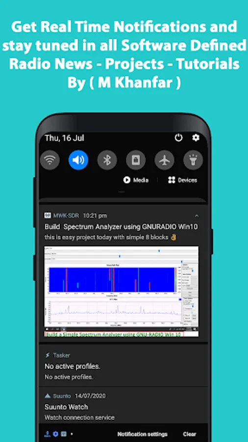 Get Real time Notifications from MWK-SDR App for daily News , Researches , Tutorials , and from best SDR sources.