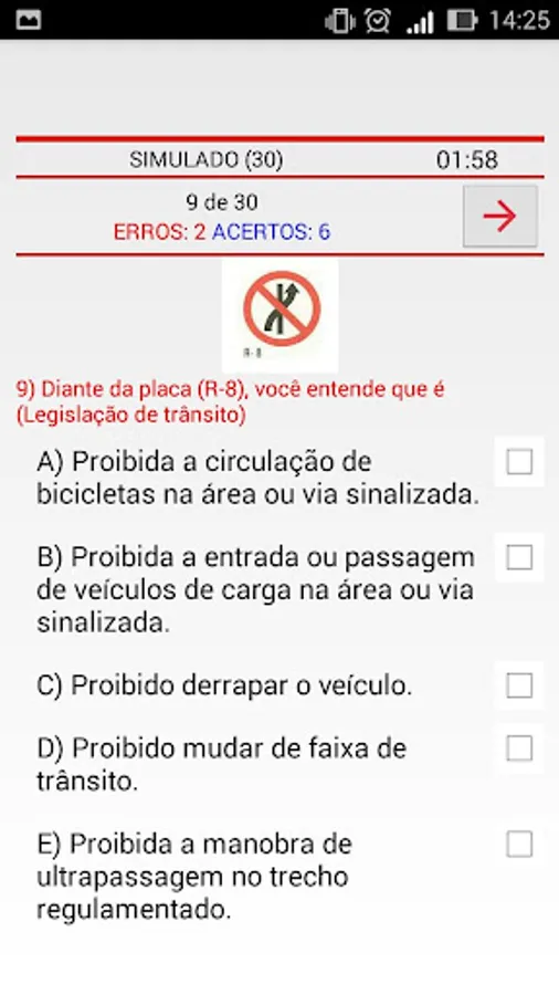 Simulated Test for CNH questions of the theoretical test of Brazil's detran.