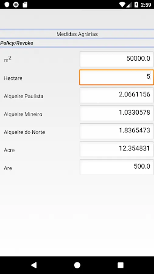 Agrarian Measurement Converter, calculation of the main Brazilian measures.