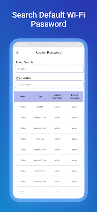 Application supports all the best routers in the world. If you don't know default login information then app provide list of modem router with brand and model. You can configure your Wi-Fi using this app.