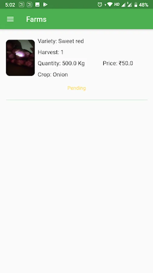 The App provides a market place for Indian farmers to connect their produce directly to buyers.