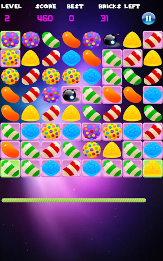 This game is simple to play and difficult to master. It has no moves limit but the time frame you are supposed to clear the field within. There are two modes - "Classic" (achieve given score) and "Arcade" (crush all of the 64 bricks on the board).