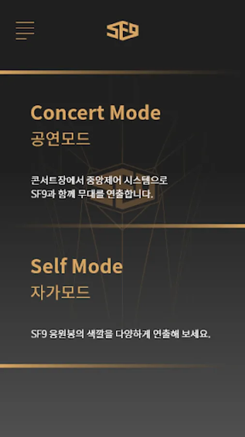 The app supports SF9 OFFICIAL LIGHT STICK VER.2.