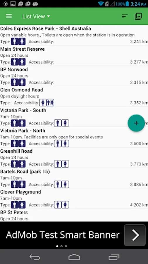From List Mode, you can acquire detail information about the surrounding restrooms, such as the location of the nearest public toilet, details of opening hours, accessibility, parking and other features. Furthermore, the list can be sorted by the distance to me, the distance to map centre or alphabetical sequence.