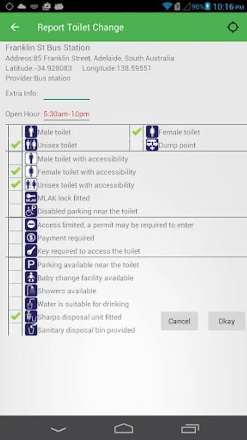 2. We could not guarantee all toilets are included and correct In this ever-changing era, but we're keeping improving them. If you found that some toilets are missing or incorrect, it would be great if you could utilize the built-in easy report feature to add/fix them, which will contribute to the community and benefit all users. Or you could send us an email about them then we'll try to improve them.