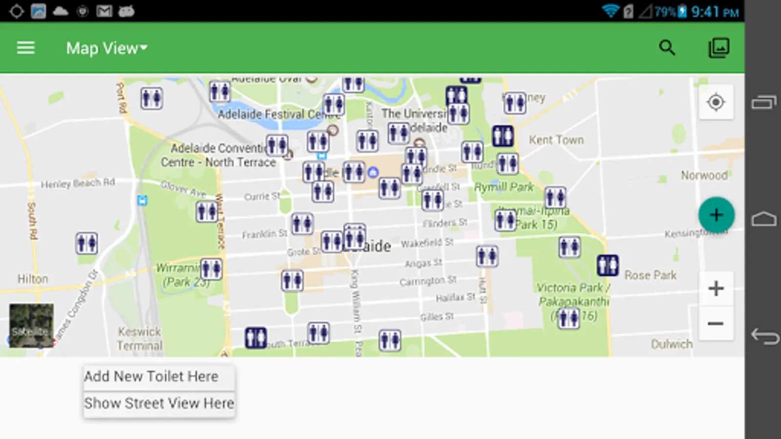 This is an awesome App which will bail you out of a sticky situation, since it can filter restrooms by toilet types, accessibility types(male, female, unisex, LHT, RHT, ambulant, parking, MLAK) and extra features (parking, babychange, adultchange, shower, water, sharps, sanitary) supplied.