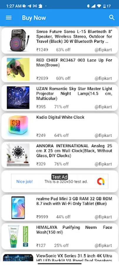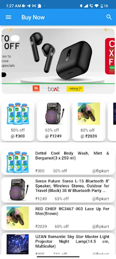 With BuyNow application you can get best offers & deals from top online shopping sites like Amazon, Flipkart, PayTM, Snapdeal, ShopClues, FoodPanda, Bookmyshow, Uber, Ola, Dominos, Myntra, Jabong, MakeMyTrip, Oyo Rooms, Goibibo, Redbus, BabyOye, Grofers, Pepperfry, Big Basket, Lenskart & more.Accessing BuyNow is quick and ad-free with less app memory and lot of notifications through App Notification, SMS, Telegram, WhatsApp.