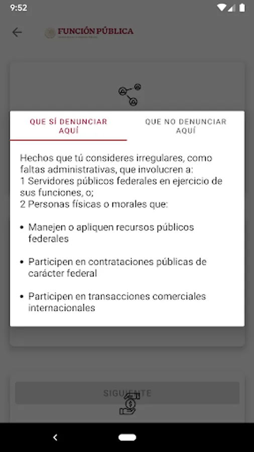 * Register a complaint or complaint about the exercise of functions of public servants at the federal level, either anonymous or with your identification data.