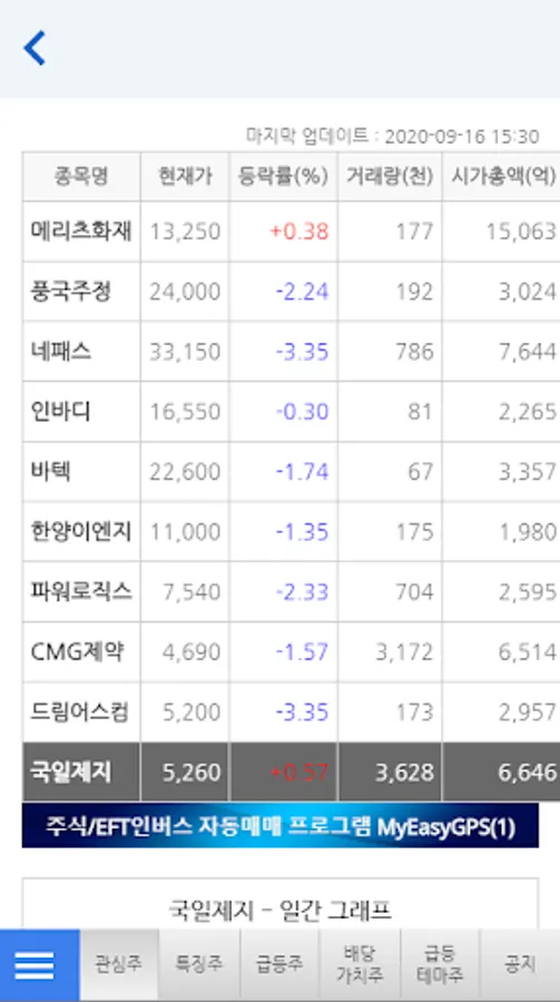 [Interested Stocks] consists of stocks that are included in the automatic trading system, and stocks of medium-term investment characteristics that search for items held for more than 20 days are searched.