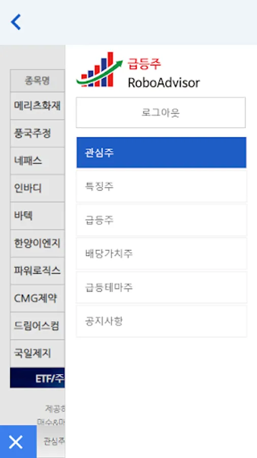 The composition of each menu is divided into five categories: interest stock, characteristic stock, soaring share, dividend value stock, and soaring theme stock.