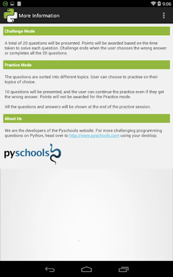 10 questions will be presented, and the user can continue the practice even if they get the wrong answer. Points will not be awarded for the Practice mode.