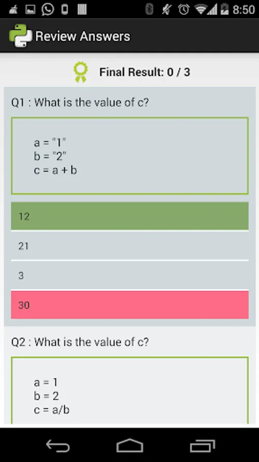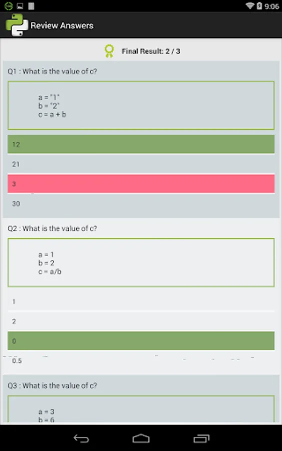 All the questions and answers will be shown at the end of the practice session.
