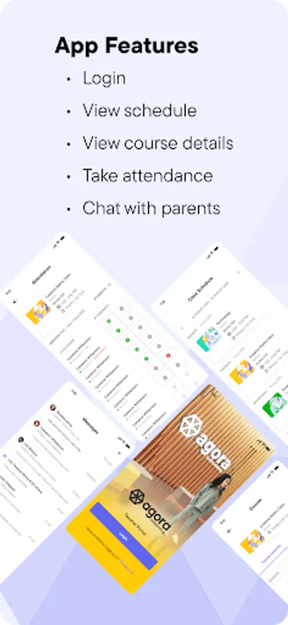 The Agora Colearning teacher app helps teachers registered with Agora Colearning in managing their schedule, manage classroom attendance and communicate with parents.