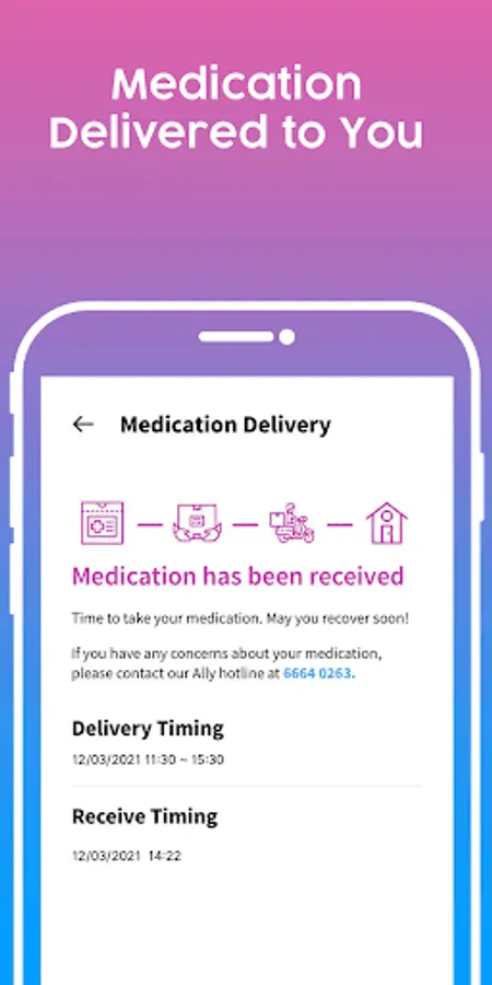 Step 3: After your video-consult, select a delivery time slot and have your prescribed medication delivered to you on the very same day. Access your medical summary of your prescriptions, medical certification and receipt in-app.