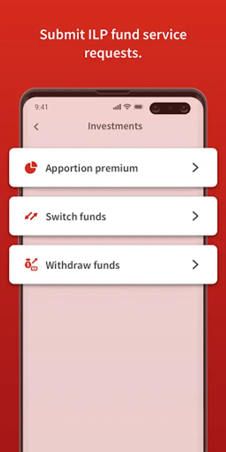 - Submit fund switch, fund withdrawal and premium apportionment service requests in-app for faster, hassle-free transactions.