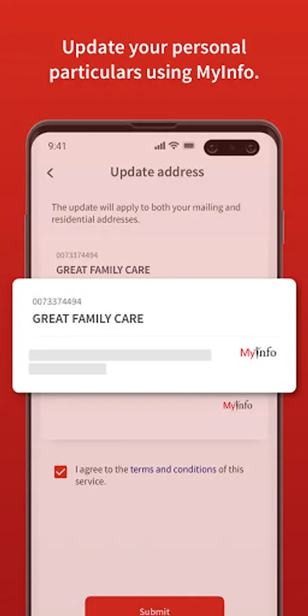 - Update your mobile number, email address and mailing address using MyInfo and SingPass.