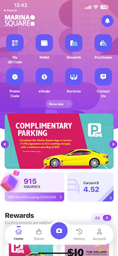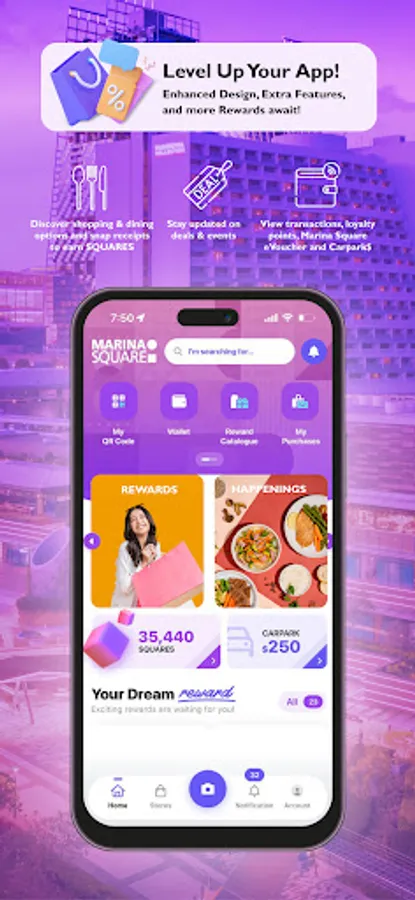 • E-Wallet to help you keep track on your transactions, eVouchers, loyalty points (SQUARES) and Carpark$