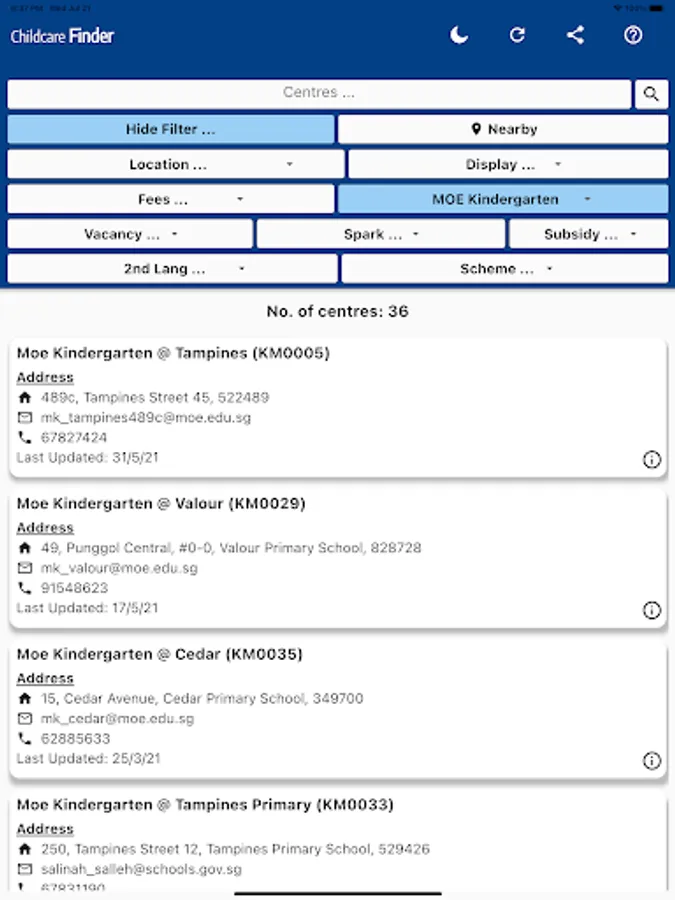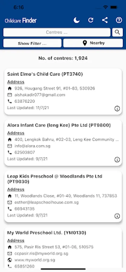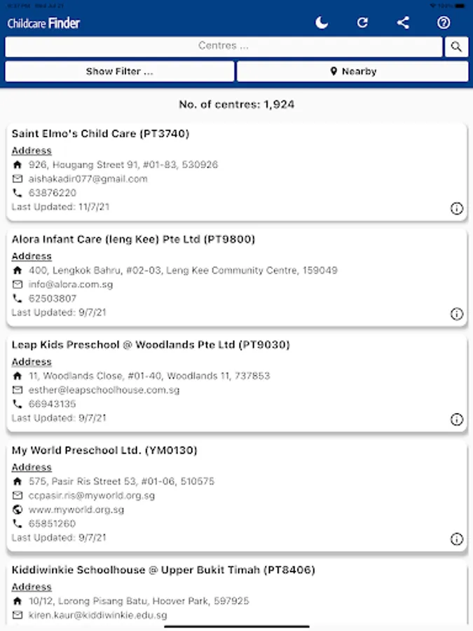 Search, sort and filter the childcare centres and pre-schools in Singapore or in your area.