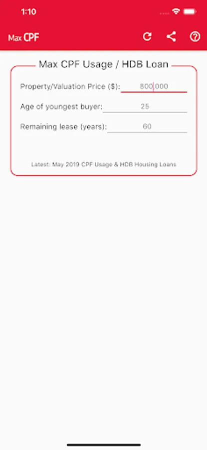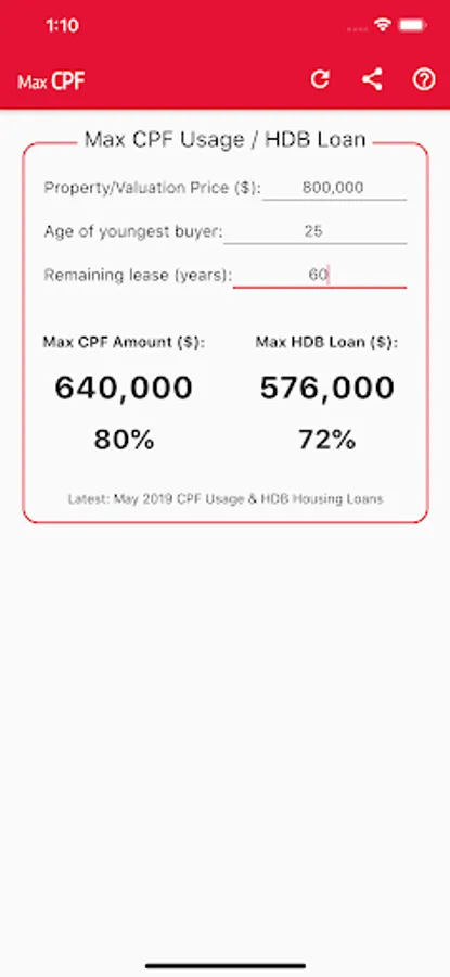 Check the maximum CPF usage and HDB loan based on the new rules on total use of CPF (with effect from 10 May 2019)