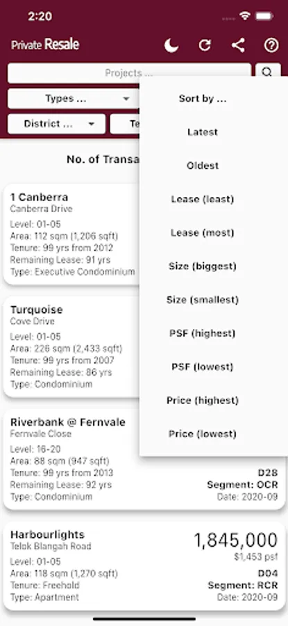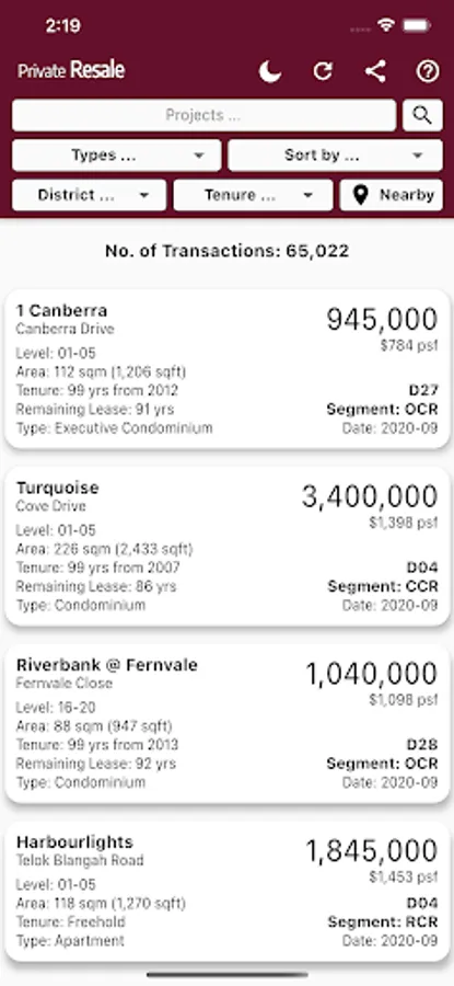 The transactions exclude resale transactions that may not reflect the full market price such as resale between relatives and resale of part shares.