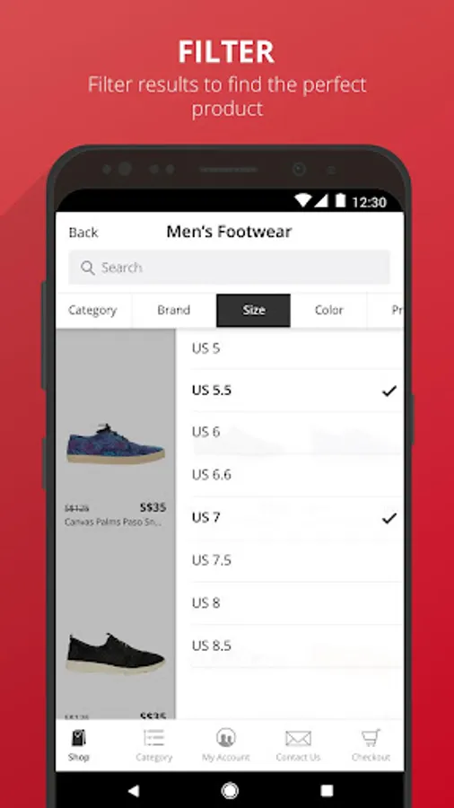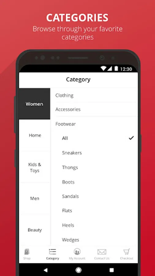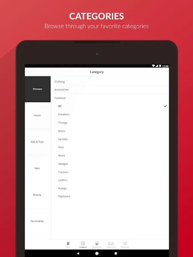 Scroll through sales, categories and items then select, zoom and choose your favourite.