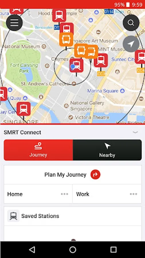 SMRTConnect is a mobile application designed to offer transport related information on SMRT’s trains and buses as well as travel suggestions for other public modes of transport in Singapore.