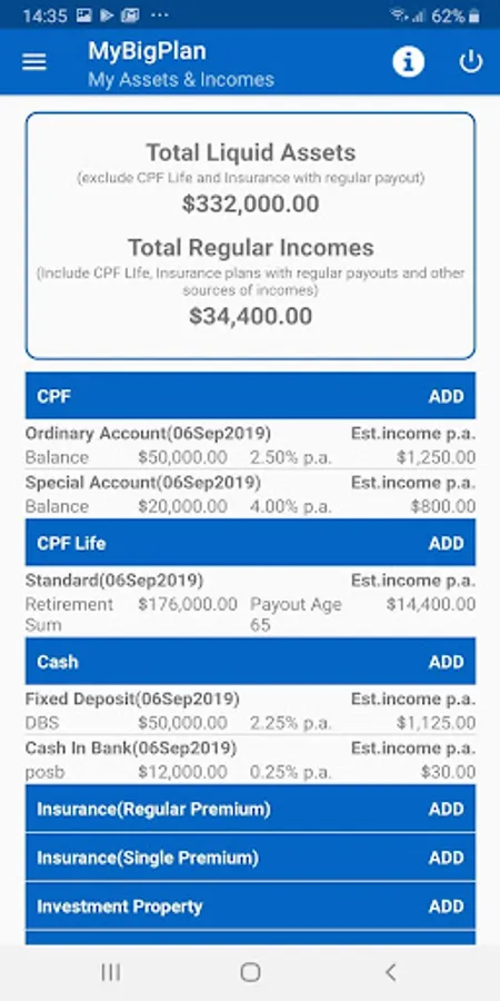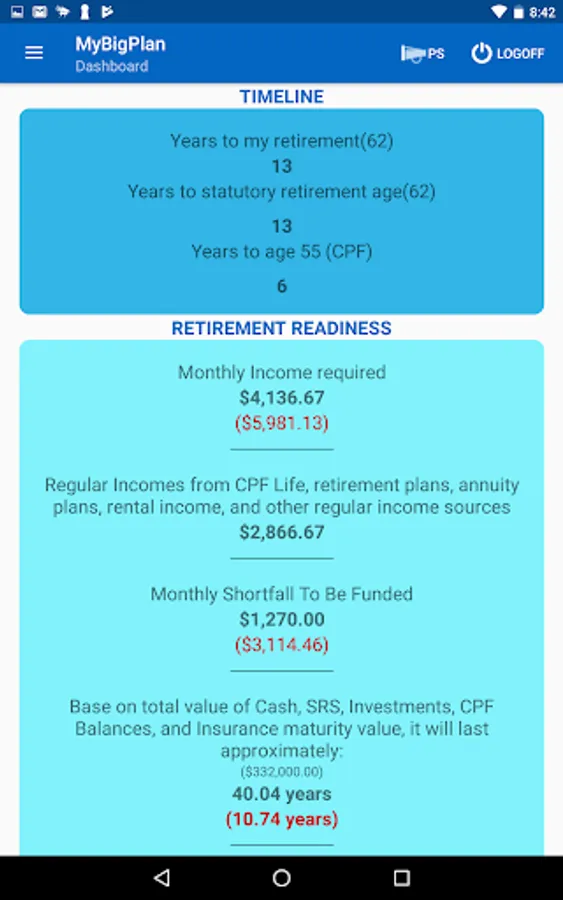 This is a tool to help you plan and track your retirement. We have created templates to input your assets & income sources and expenditures, and this will in turn will help you gauge your readiness for retirement. This is a Singapore specific app for Singaporeans. Related to Retirement planning, Retirement planner, CPF Life, CPF and Budgeting.