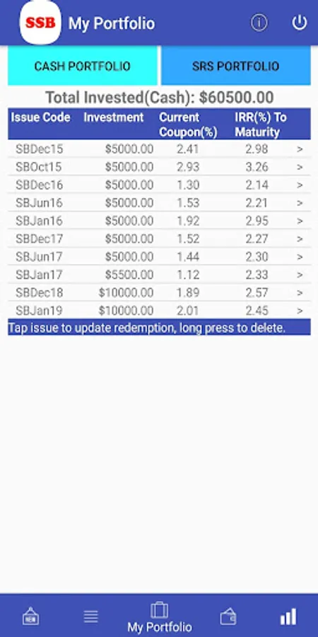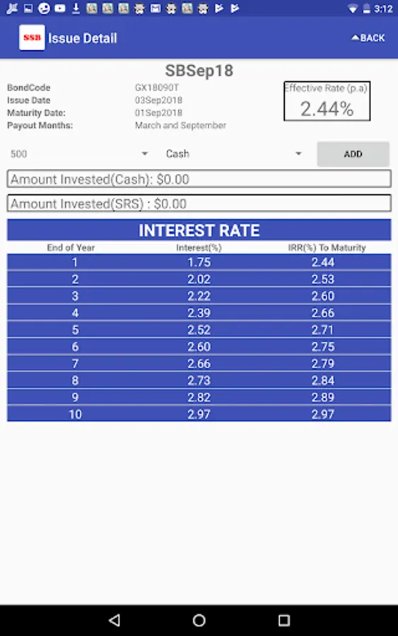 SSBond is designed to manage your growing Singapore Savings Bonds Portfolio and give you the information you need to make better decision. App require Android 6.0 and above.