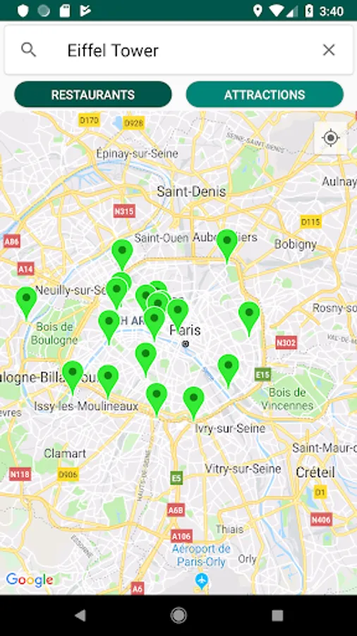 Allows search function, locates nearby restaurants and attractions near you, gives directions to the location, learn more about the places, and allows you to save the place if you want to go there next time on your trip.