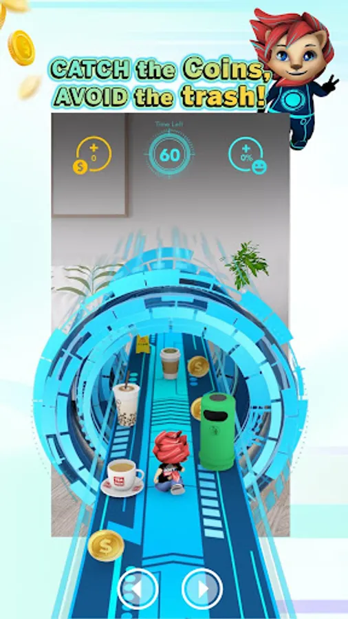 Game: Shopper Dash. Catch the coin and avoid the trash.