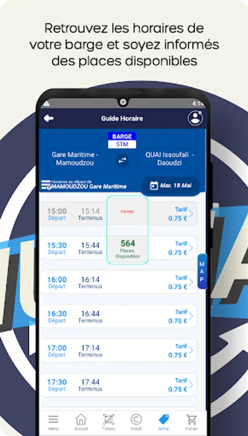 With your WUSHIA app! you can consult the crossing times, the planned departures and the number of places available in real time.